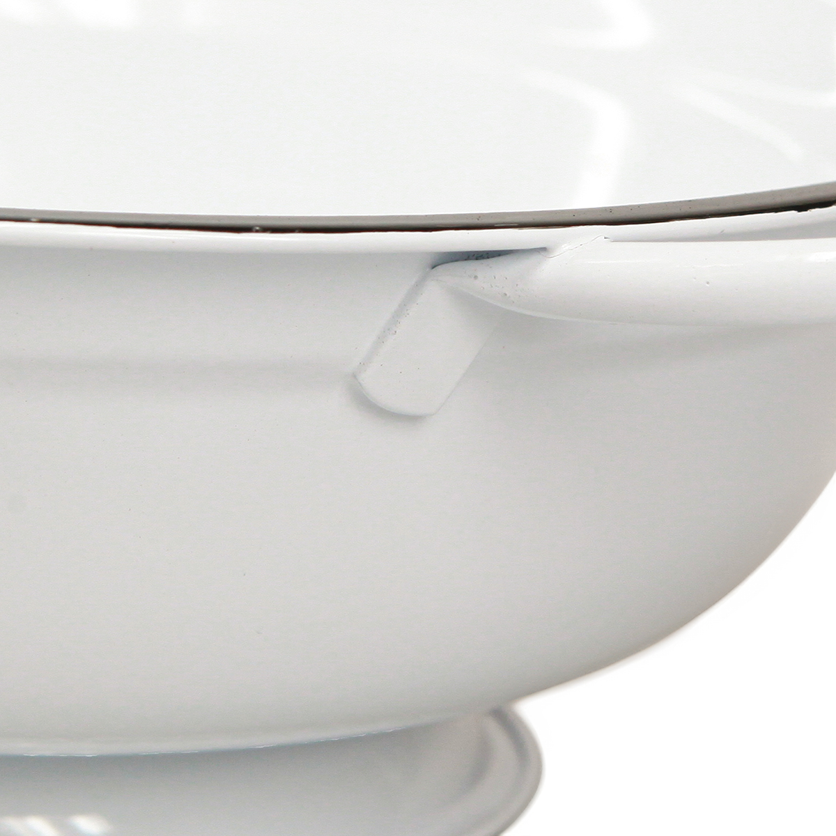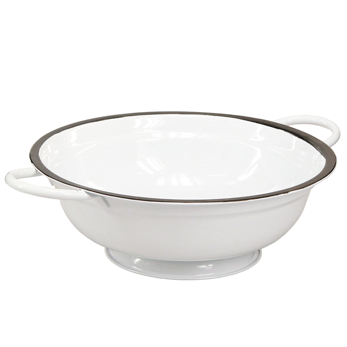 Takket være deres nøytrale farge i hvitt med svart kant, passer metallskålene harmonisk inn i en lang rekke møbleringsstiler, enten det er den trendy shabby chicen, en klassisk atmosfære eller et moderne hjem. Skålene er ikke bare et stilig tillegg til hjemmet ditt, men også et populært valg for profesjonelle dekoratører og arrangementsplanleggere på jakt etter autentiske og smart iscenesatte dekorasjonsløsninger. Kombiner enkelt skålene med de matchende koppene i samme design, som er tilgjengelige separat fra Floristik24, og skap en sammenhengende dekorativ verden på kjøkkenet eller på spisebordet.