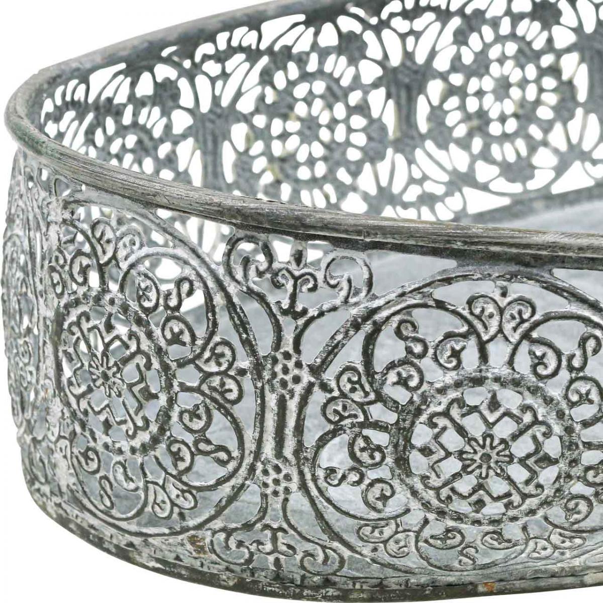 Dekorativ skål metallmønster grå oval L36cm/33,5cm sett m...