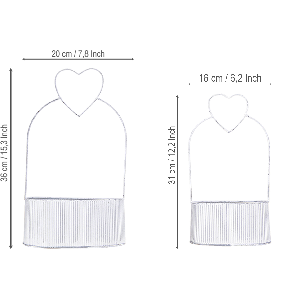 Dette sjarmerende settet med to dekorative metallskåler i en grasiøs oval design er det perfekte tillegget til ethvert hjem som trenger et snev av romantisk raffinement. De hvite plantekassene med hjertemønster utstråler en klassisk eleganse som ideelt sett kan kombineres med ulike interiørstiler. Enten herregård, shabby chic eller moderne minimalisme – disse hjerteformede pregede bollene harmonerer perfekt med din eksisterende dekorasjon. Sporene med metallisk grå slitasje skaper en trendy vintage-look som vil glede elskere av nostalgisk design. De to skålene i forskjellige størrelser egner seg ikke bare til stilig borddekorasjon, men tilbyr også en rekke kreative dekorasjonsmuligheter som å plante sukkulenter eller arrangere lys. Kombiner disse ovale bollene med annet kjærlig utvalgt hjemmetilbehør i hvitt metall fra Floristik24 for en harmonisk helhet. Trådhjertene på håndtakene gir også muligheten til å skape en individuell stil med små løkker.