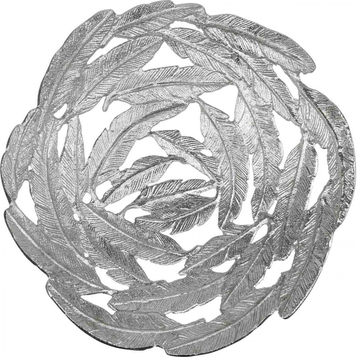 Dekorativ skål sølv metall bollefjær Ø37cm H9cm