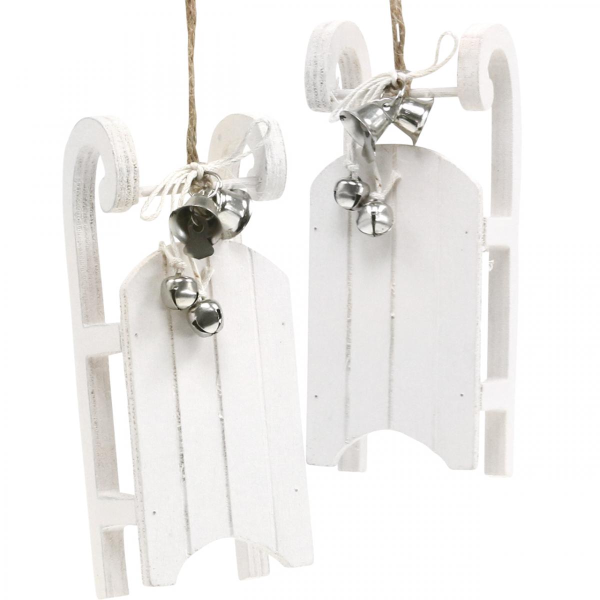Dekorativ slede hvit sølv med bjellesnor L13cm 4 stk