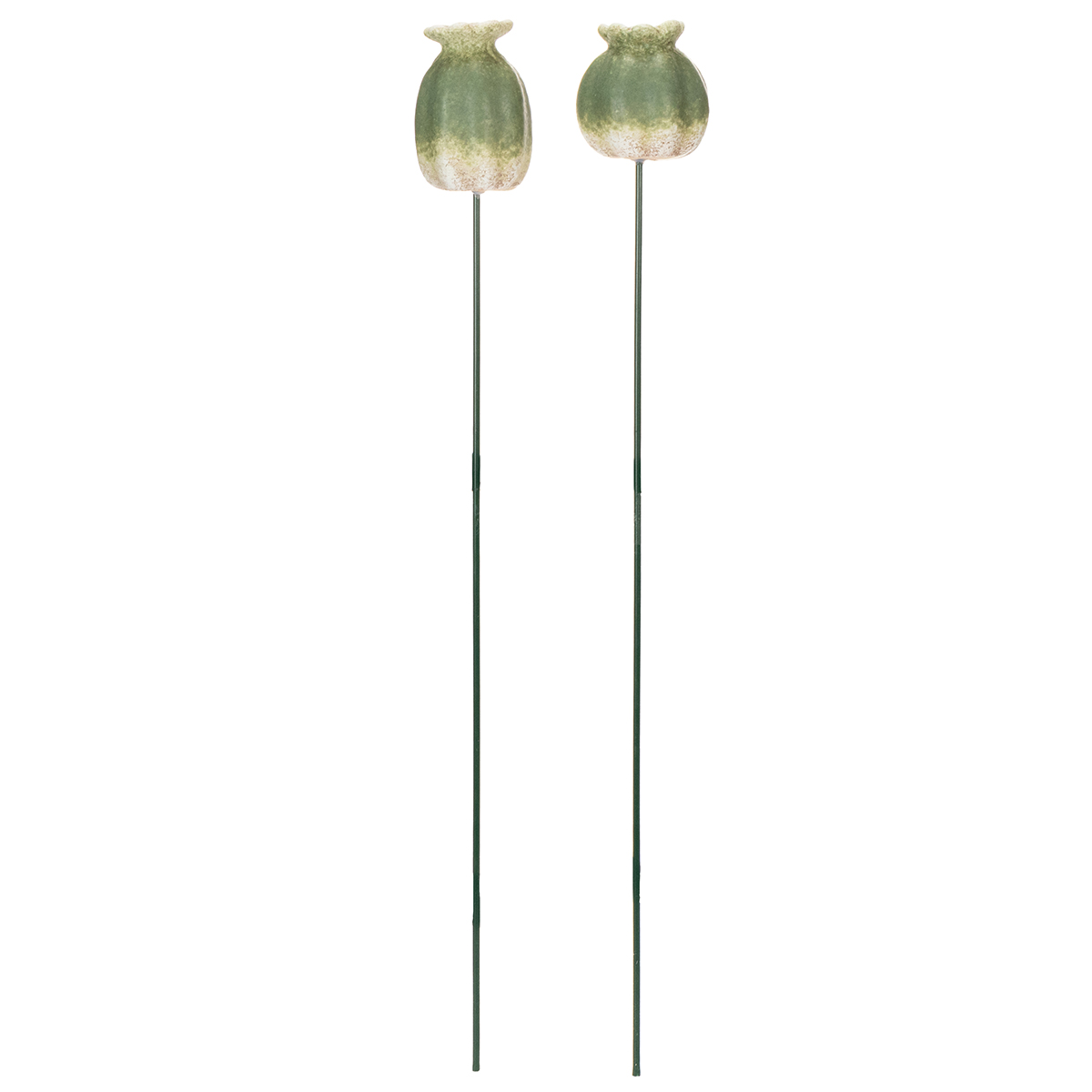 Disse valmuefrøkapslene, montert på en stag og måler 41 centimeter i lengde, er et ideelt tillegg til utendørsdekorasjoner. Laget av keramikk av høy kvalitet, gir den klassiske grønne fargen dem et bemerkelsesverdig naturlig utseende, mens den robuste følelsen tilfører et snev av eleganse. Valmuefrøkapslene finnes i to varianter, noe som sikrer at hver av dem har en liten visuell variasjon, noe som tilfører visuell interesse og en naturlig følelse. Perfekt for et landlig eller botanisk utseende – diskret eleganse på sitt beste.