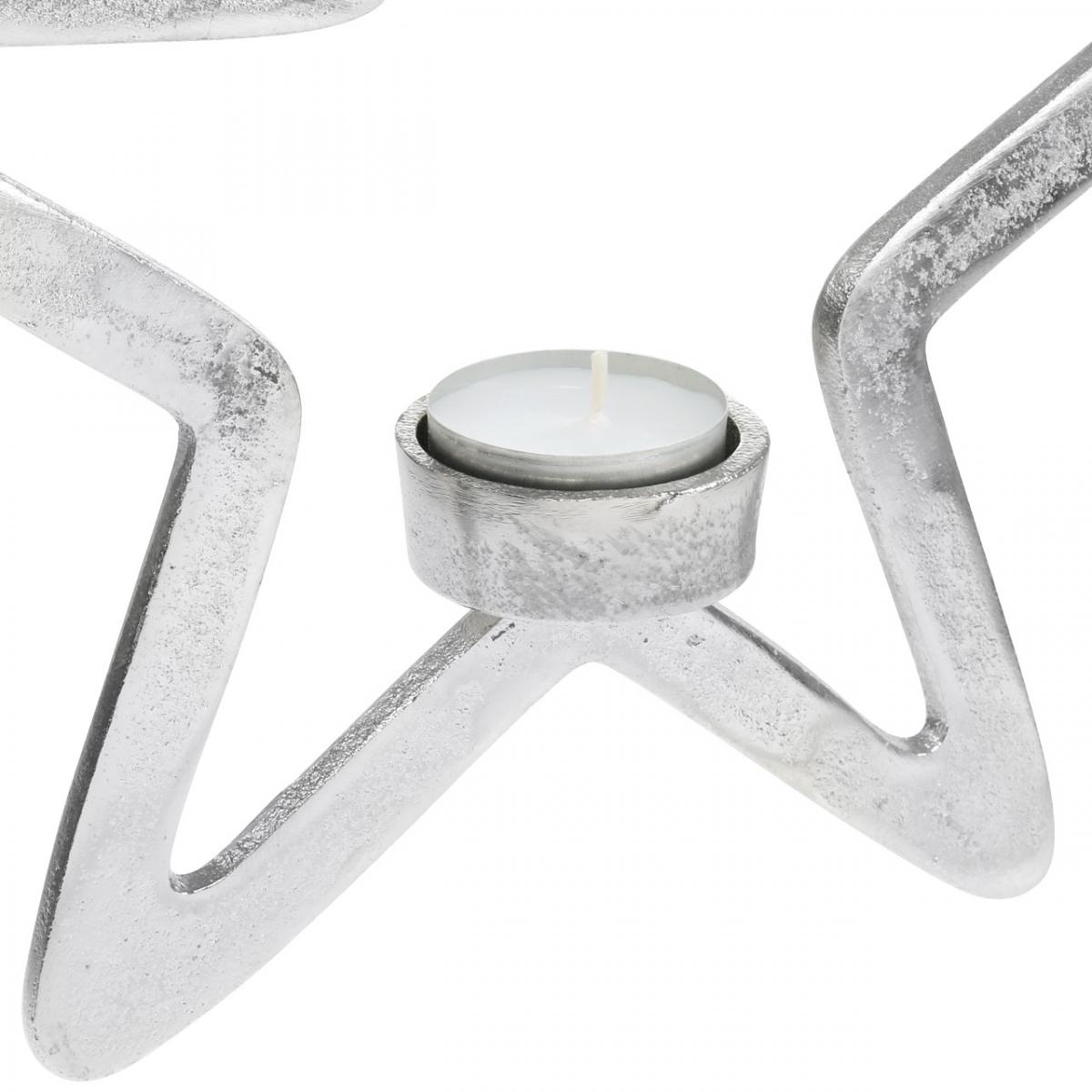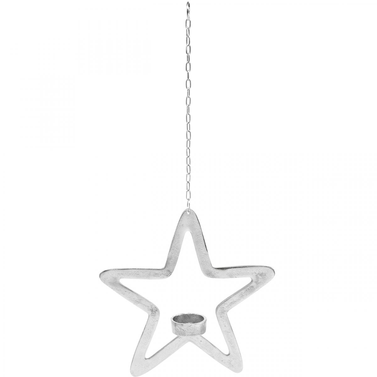 Dekorativ stjerne telysholder metall for oppheng av sølv 24cm