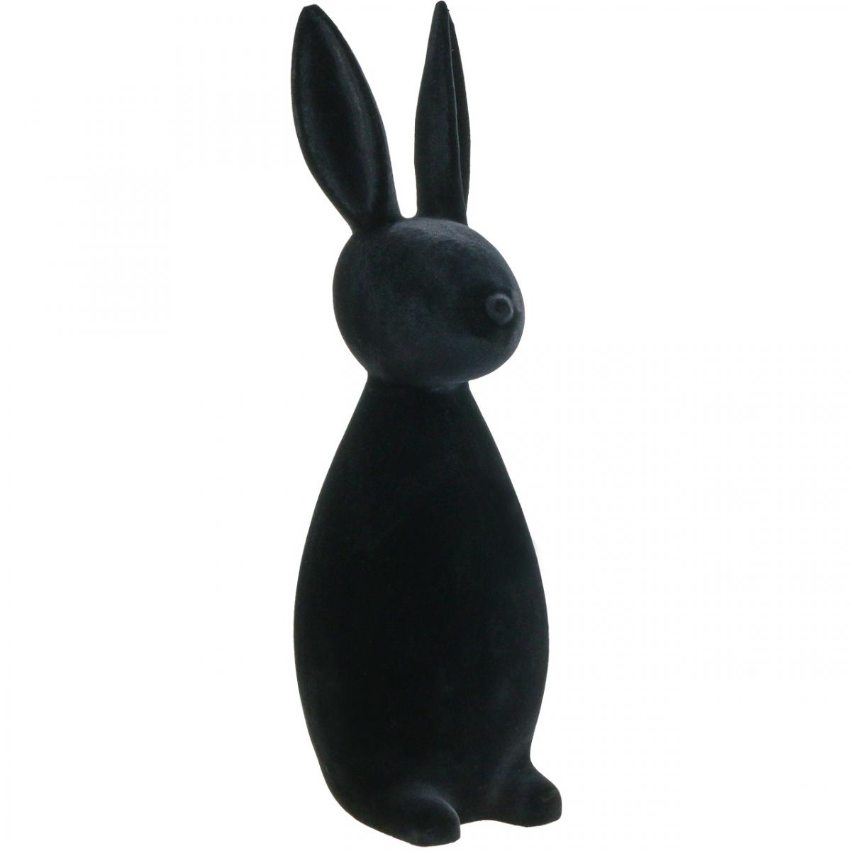 Produktnavn: Dekorativ svart påskehare, flokket, H69cm