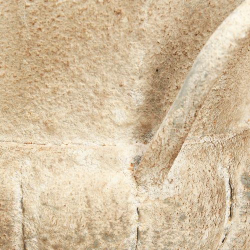 Den dekorative plantekassen med et antikt utseende er mer enn bare en plantekasse. Med sitt vintage-inspirerte utseende i gråbrunt og en diameter på 13 cm og en høyde på 19 cm, passer den perfekt til møbleringsstiler som landstedet eller retro-looken. Den fine patinaen gir plantekassen en unik sjarm som forsterker stemningen i hjemmet ditt.