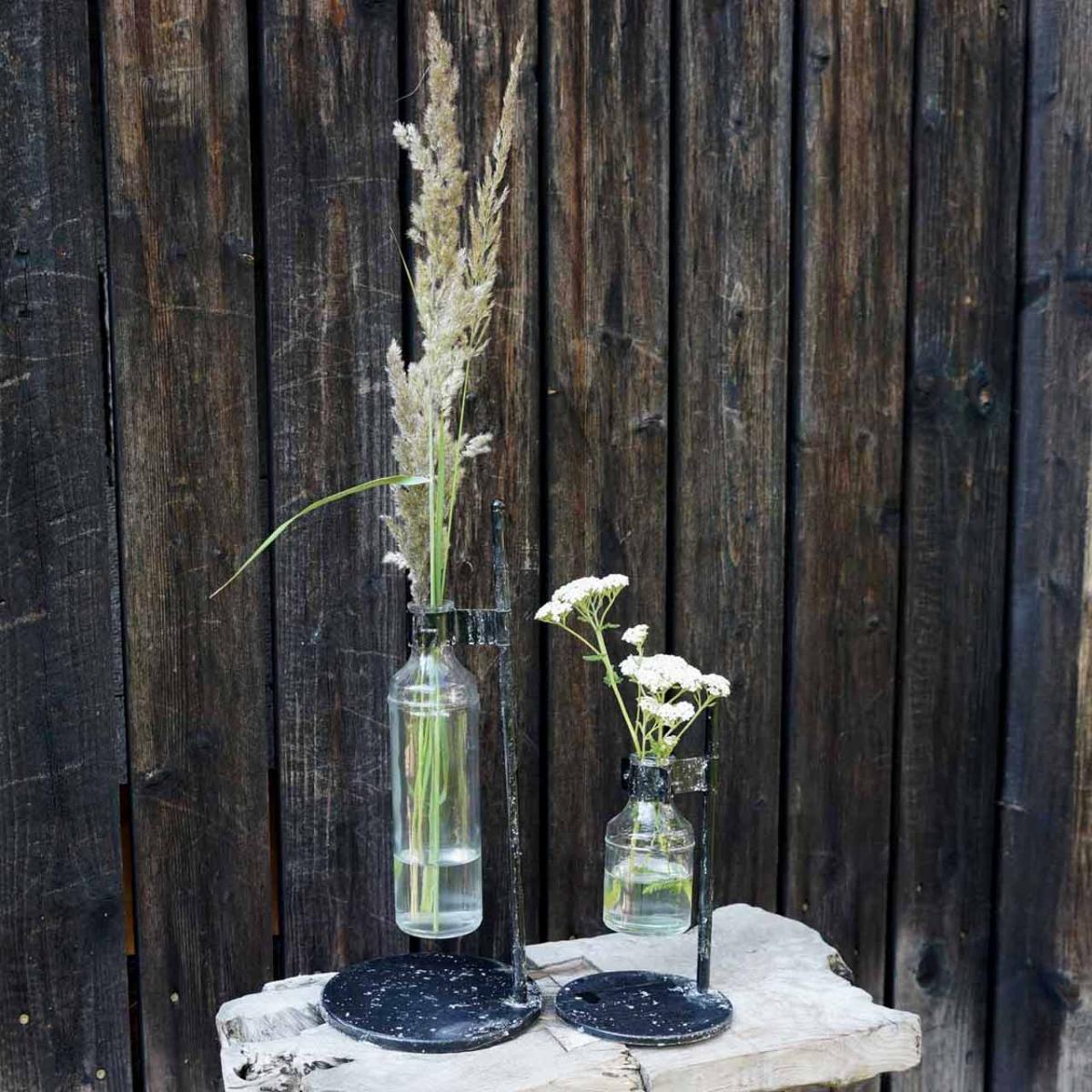 Dekorativ vase dekorativ flaskeglass med metallstativ svart Ø13cm