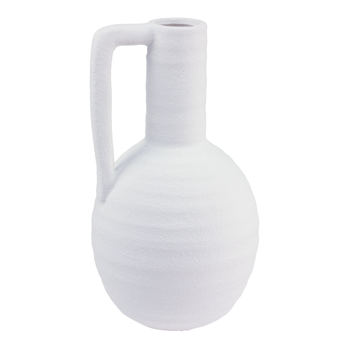 Dekorativ vase hvit blomstervase med håndtak keramikk H26cm