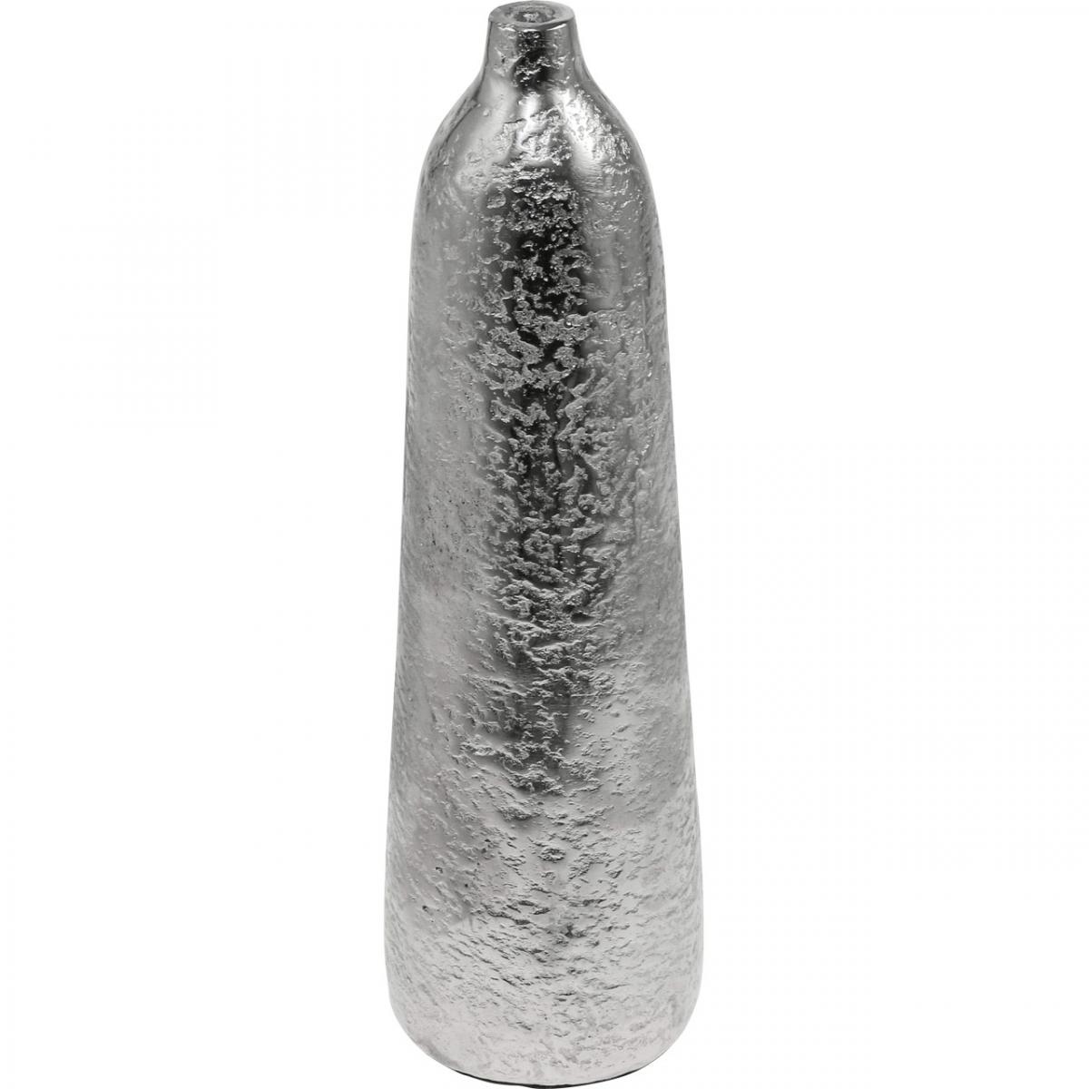 Du kan elegant vise langstilkede blomster i denne formfulle dekorative metallvasen. Blomstervasen i sølv imponerer med sitt tidløse design.