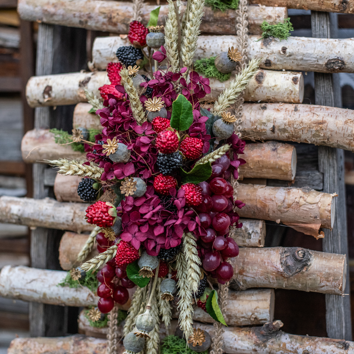 Men de dekorative druene ser også nydelige ut på tallerkenen. Den er spesielt vakker som en kunstig fruktskål, arrangert som en trio med de små kunstige druene i rødt og blått!