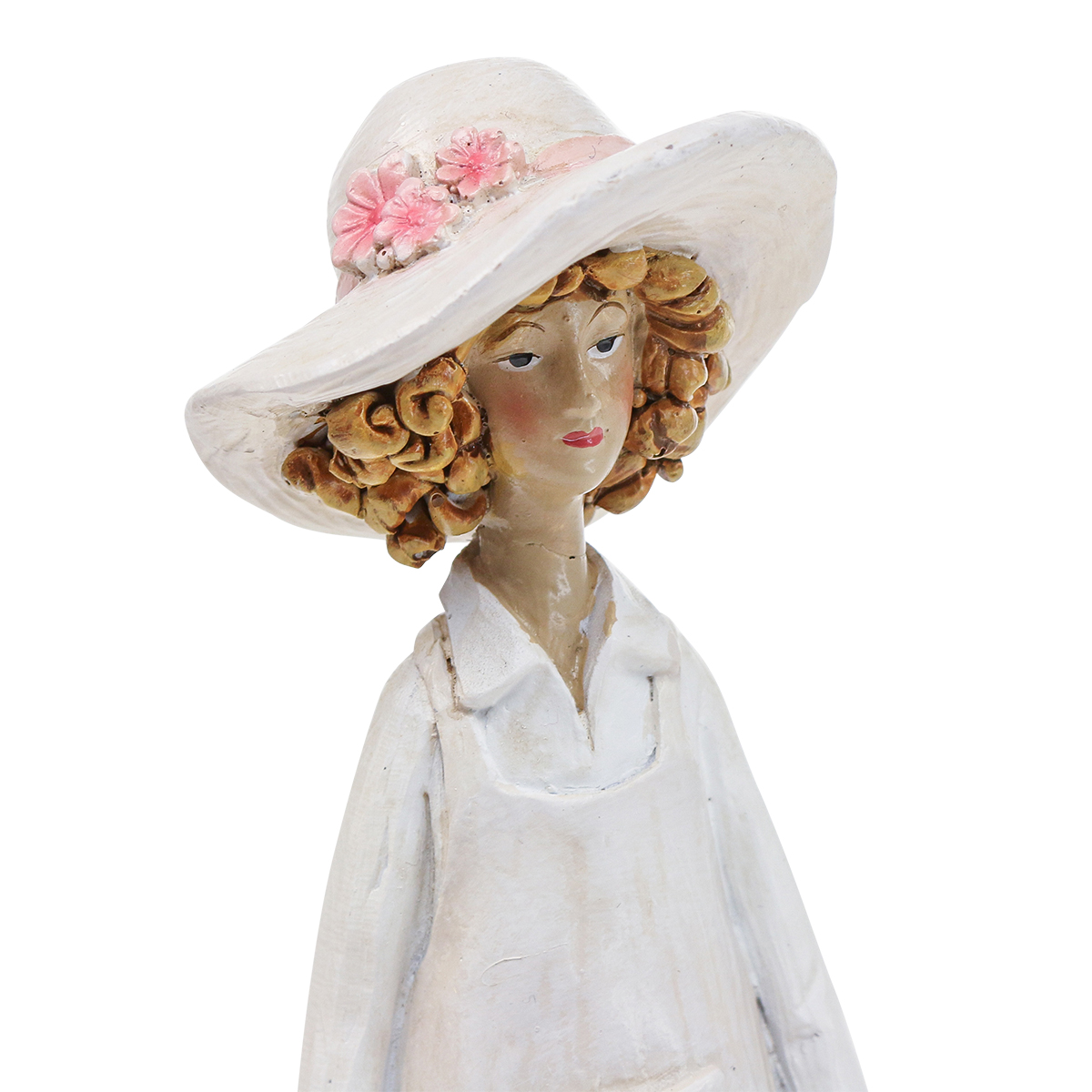 Produktnavn: Dekorative figurer gartner dekorasjon kvinne med blomster hvit rosa H21cm