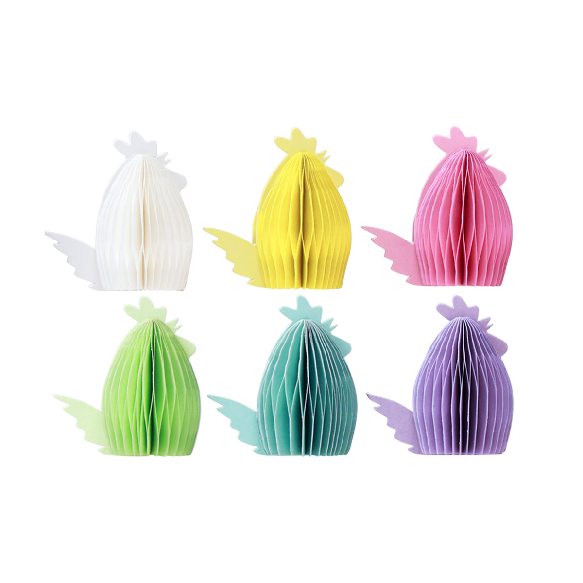 Dekorative figurer honeycomb papir kyllinger farget 7,5×4,5×8cm 6stk