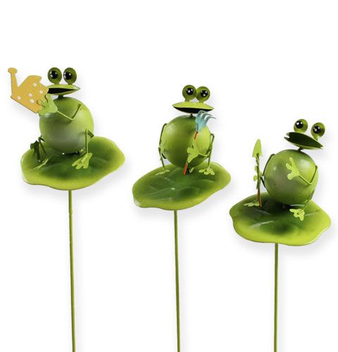 Dekorative frosker med hageredskaper, stilige, ultramoderne og vårgrønne! Froskene er kjærlig laget på en metallstang, og er attraktive og spesielt vakre for enhver dekorasjon av vindusbokser, containerplanter eller buketter, samt for alle kreative ideer til påsken. Klasse for håndverk med barn, også for attraktive borddekorasjoner, klassiske påskegaver eller for utstillingen av utstillingsvinduet.