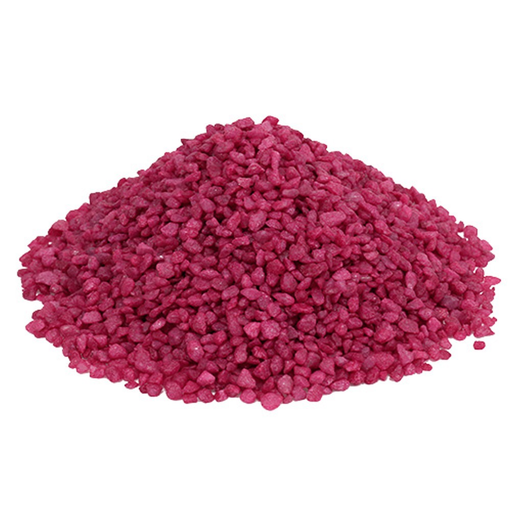 De fargede dekorative granulatene i fuchsia tilbys i en pose som veier rundt 2 kilo. Steinene er mellom 2 og 3 millimeter store og beholder sin lyse farge selv under vann.