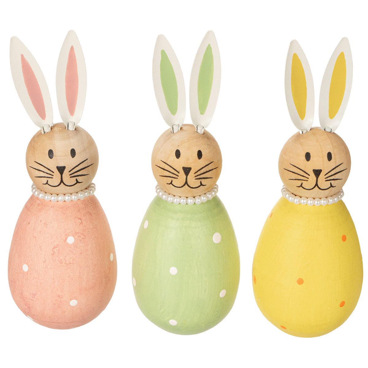 Dekorative kaninfigurer i eggdesign for vårlig hjemmedekor, 12 cm, 3 stk.