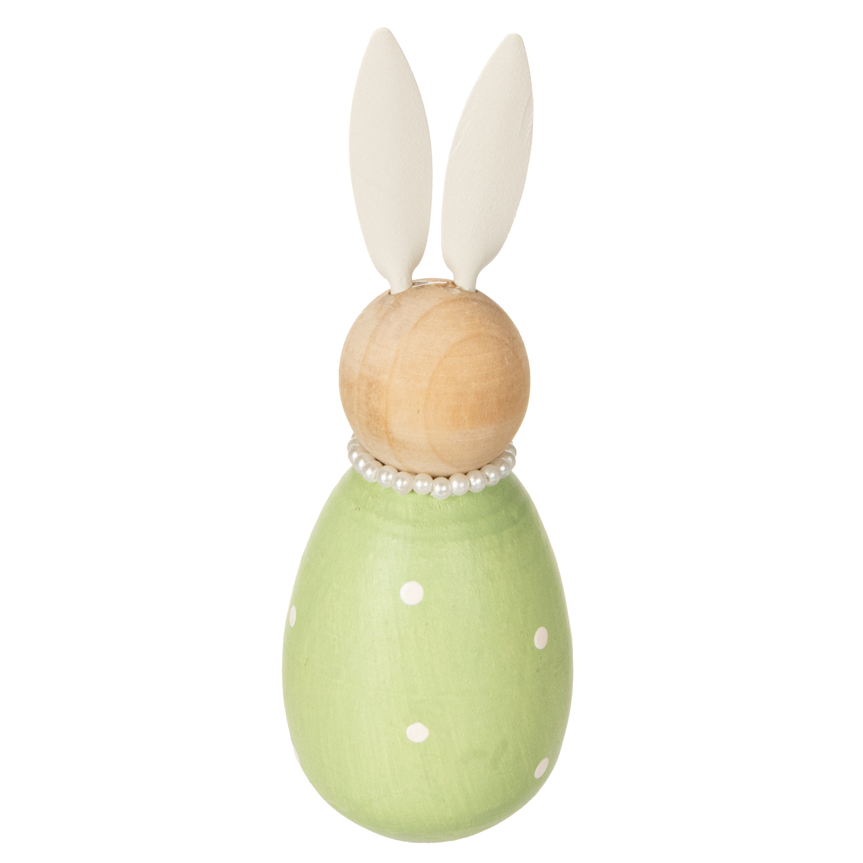 Hva er vel bedre enn å ønske våren velkommen med sjarmerende dekorasjoner? Disse dekorative eggformede kaninfigurene vil ikke bare bringe et smil til alles ansikt, men også fylle stuen din med en munter vårstemning. Enten de er i vinduskarmen, påskebordet eller en hylle, vil disse kjærlig utformede dekorative figurene garantert fange alles oppmerksomhet. Med sine delikate pastellfarger av rosa, gult og grønt, og håndmalte detaljer, gir de hjemmet ditt et varmt og innbydende preg. De fine metallørene, de subtile prikkene på eggkroppene og de yndige perlekjedene rundt halsen – disse små detaljene gjør figurene virkelig spesielle. Ønsker du å tilføre et snev av vårlig letthet til rommene dine eller forbedre påskedekorasjonene dine? Da er disse fargerike trekaninene det perfekte valget!