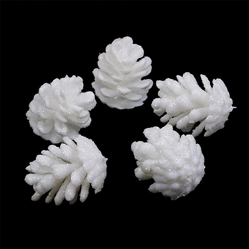 Produktnavn: Dekorative kjegler hvit glitter spredt dekorasjon hengende dekorasjon 3,5cm 45 stk.