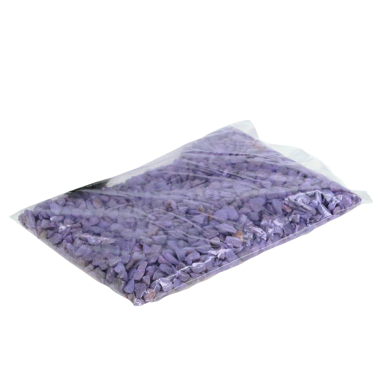 De naturlige dekorative steinene er farget i en sterk auberginetone og tilbys i en pose med en totalvekt på 2 kilo. Størrelsen på steinene varierer fra omtrent 9 til 13 millimeter.
