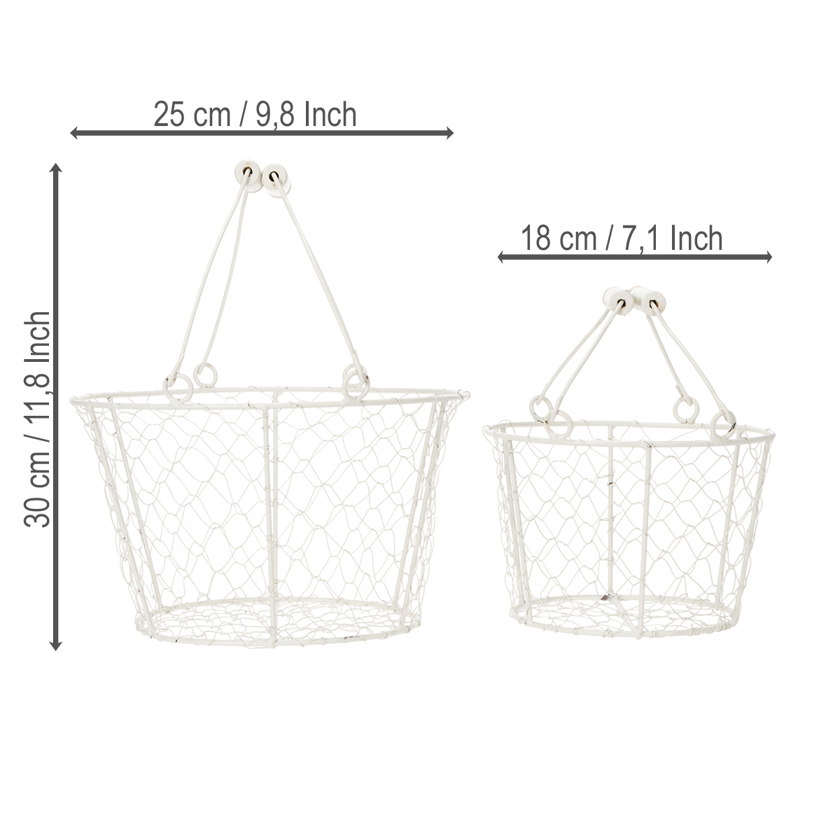Elsker du å personliggjøre hagen din og gjøre den innbydende? Da er vår dekorative trådkurv det perfekte tilskuddet! Med sitt lekne design i tidløst hvitt, tilbyr den uendelige muligheter. Enten det er for romantiske blomsterarrangementer, som flytende blomsterkasser eller til og med for å organisere hageredskaper – denne hvite trådkurven er ikke bare praktisk, men også et skikkelig blikkfang. Spesielt for de med et øye for detaljer eller som elsker bohemsk og landlig stil! Selv den minste planten vil bli perfekt fremhevet. Og hvis du vil skape en koselig atmosfære om kvelden, hvorfor ikke plassere et stearinlys inni? Den metalliske strukturen skaper fascinerende lys- og skyggespill. Vi vedder på at du allerede tenker på det perfekte stedet for den!