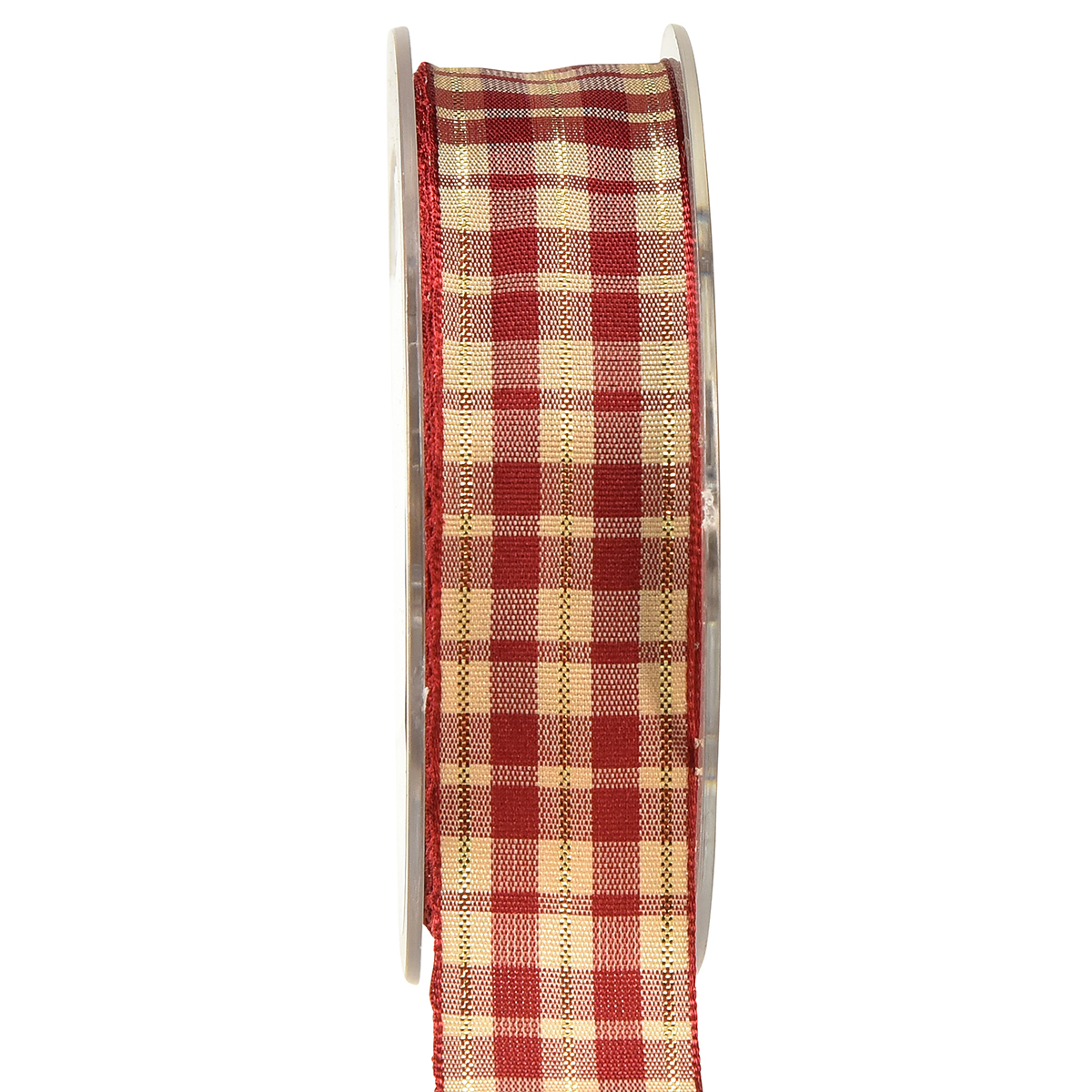 Dekorativt bånd dekorativt bånd rutete bånd rødt beige gull B25mm L20m