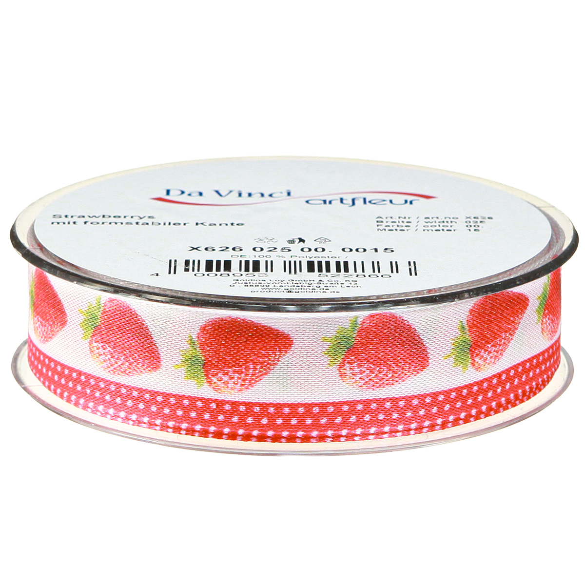Dekorativt bånd jordbær stoffbånd formstabile kanter 25mm 15m