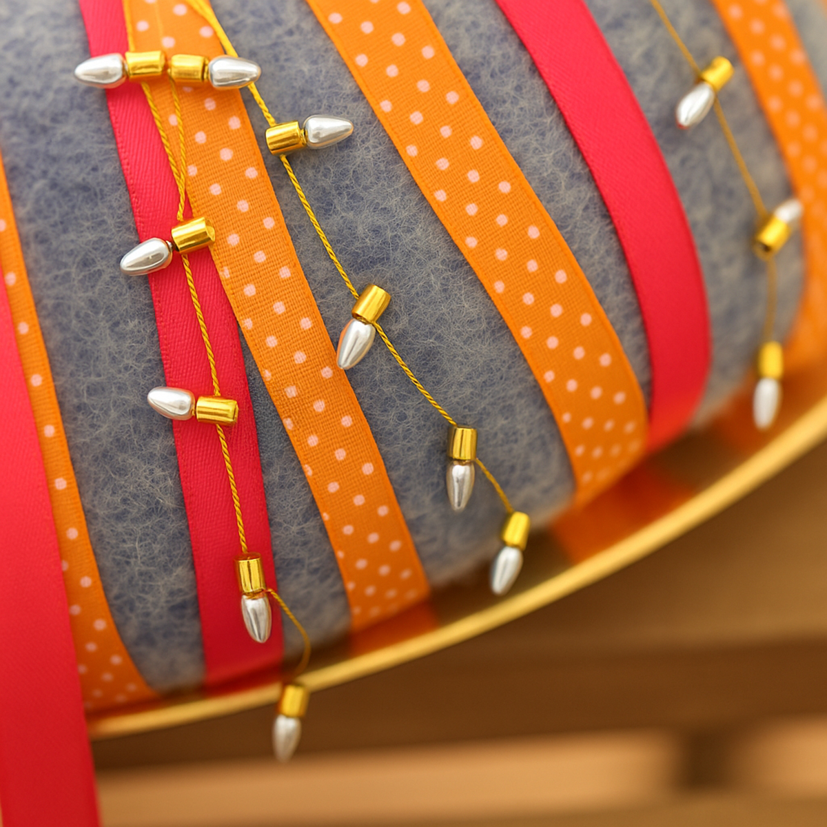 Fortryll julesesongen med vårt utsøkte julebånd i gull og sølv. Dette dekorative båndet med sine sølv dekorative lys gir en sjarmerende touch til festen. Det dekorative båndet, som minner om en lysstreng, er perfekt for håndverkselskere og dekoratører som ønsker å gi kreasjonene sine en elegant, festlig glans.