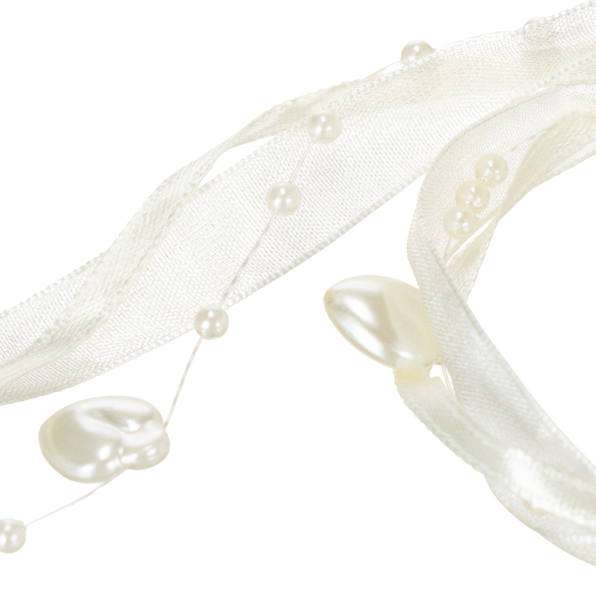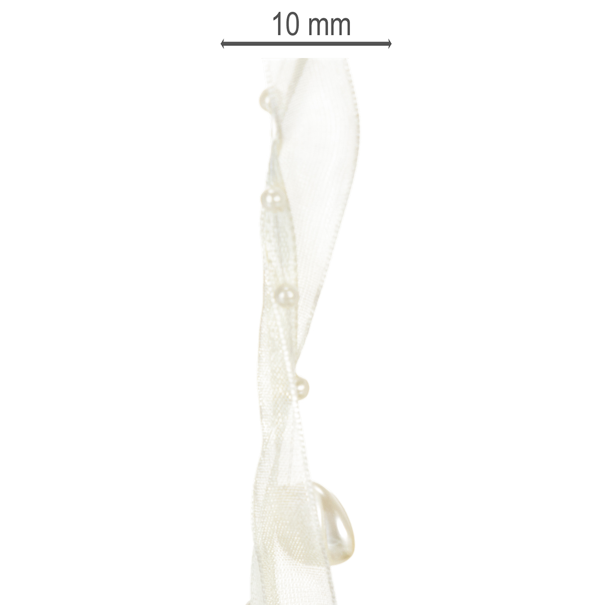 Produktnavn: Dekorativt bånd, kremfarget, hjerter, perler, bryllupsdekorasjon, 10 mm, 5 m