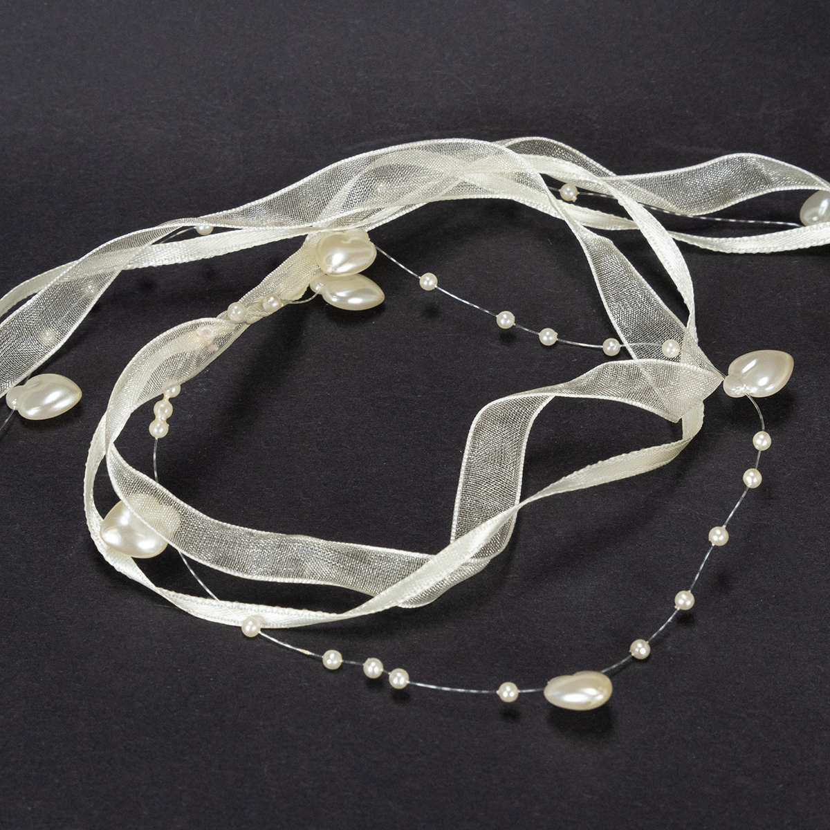 Silkebåndet er designet med stor oppmerksomhet på detaljer og består av et semi-transparent bånd med en kant. Perlemor-glansen på båndet, hjerter og perler utstråler en glamorøs sjarm.