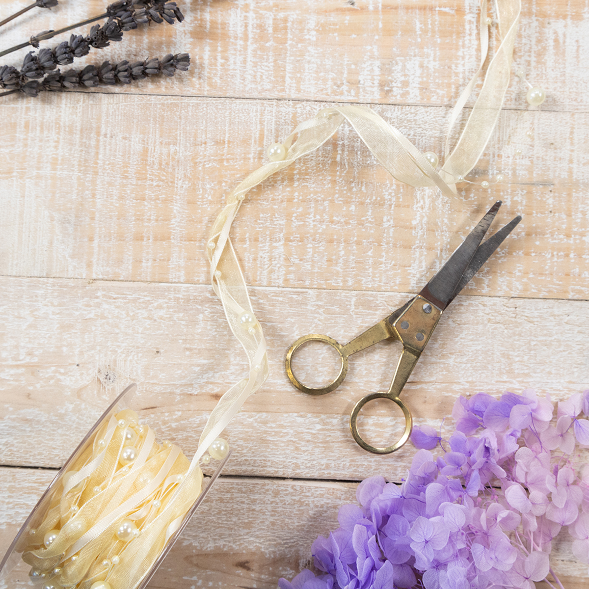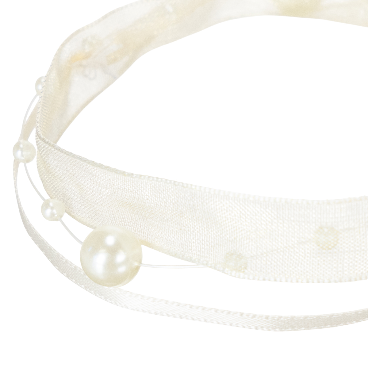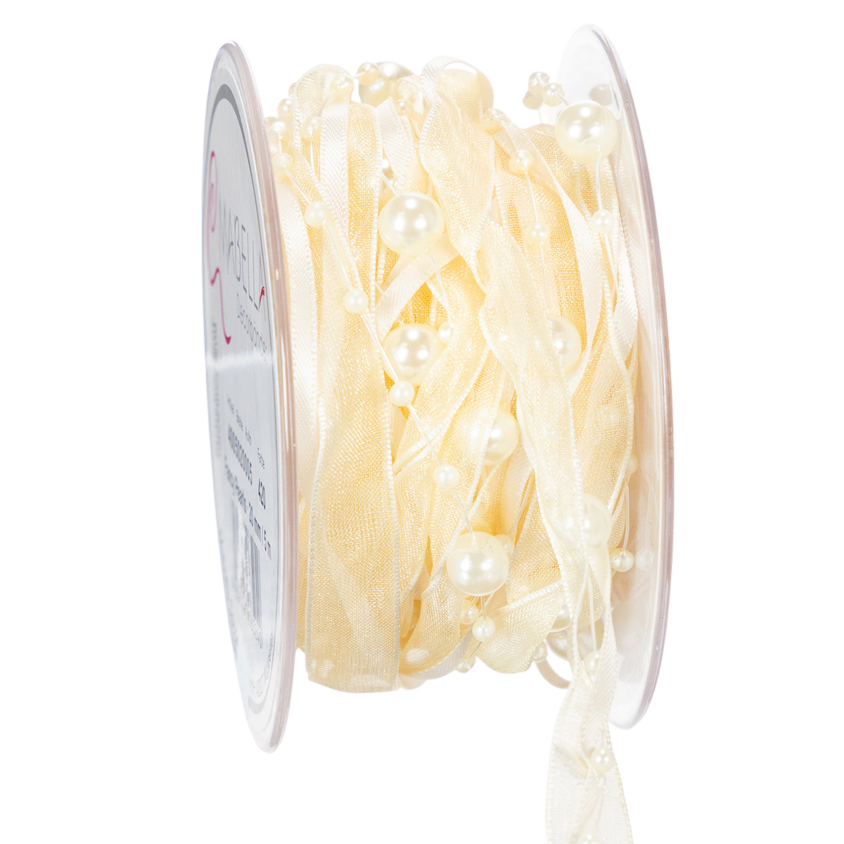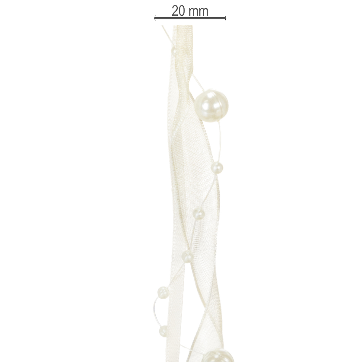 Dekorativt bånd med perler, kremfarget, 20 mm, 5 m
