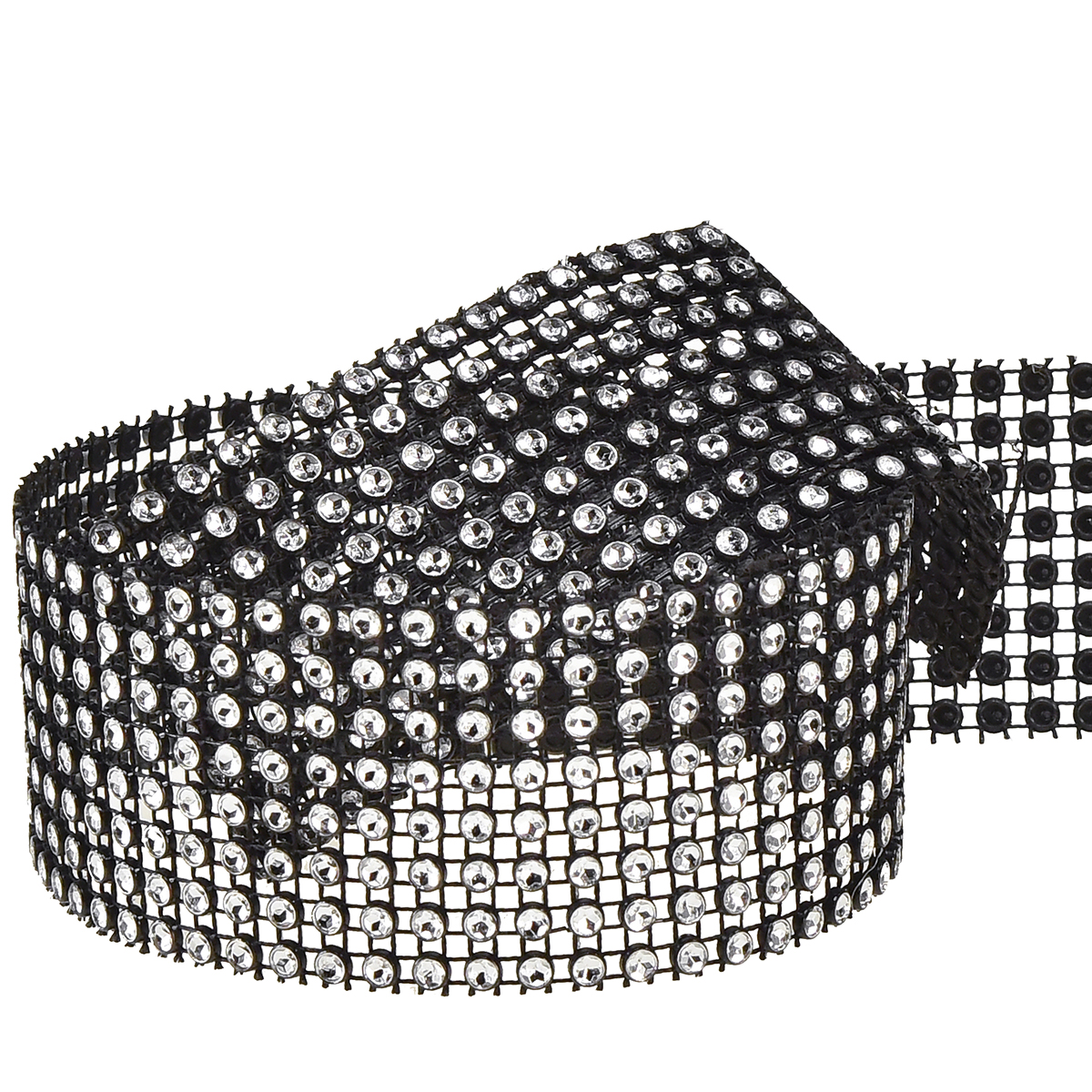 Med en bredde på 40 mm og en lengde på 2 m, tilbyr vårt svarte bånd nok materiale for et bredt utvalg av dekorasjons- og designideer. Det sorte båndet skinner i en dyp, fyldig farge, mens de jevnt arrangerte rhinestones skaper en attraktiv glittereffekt.