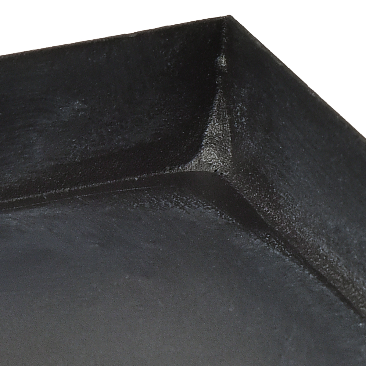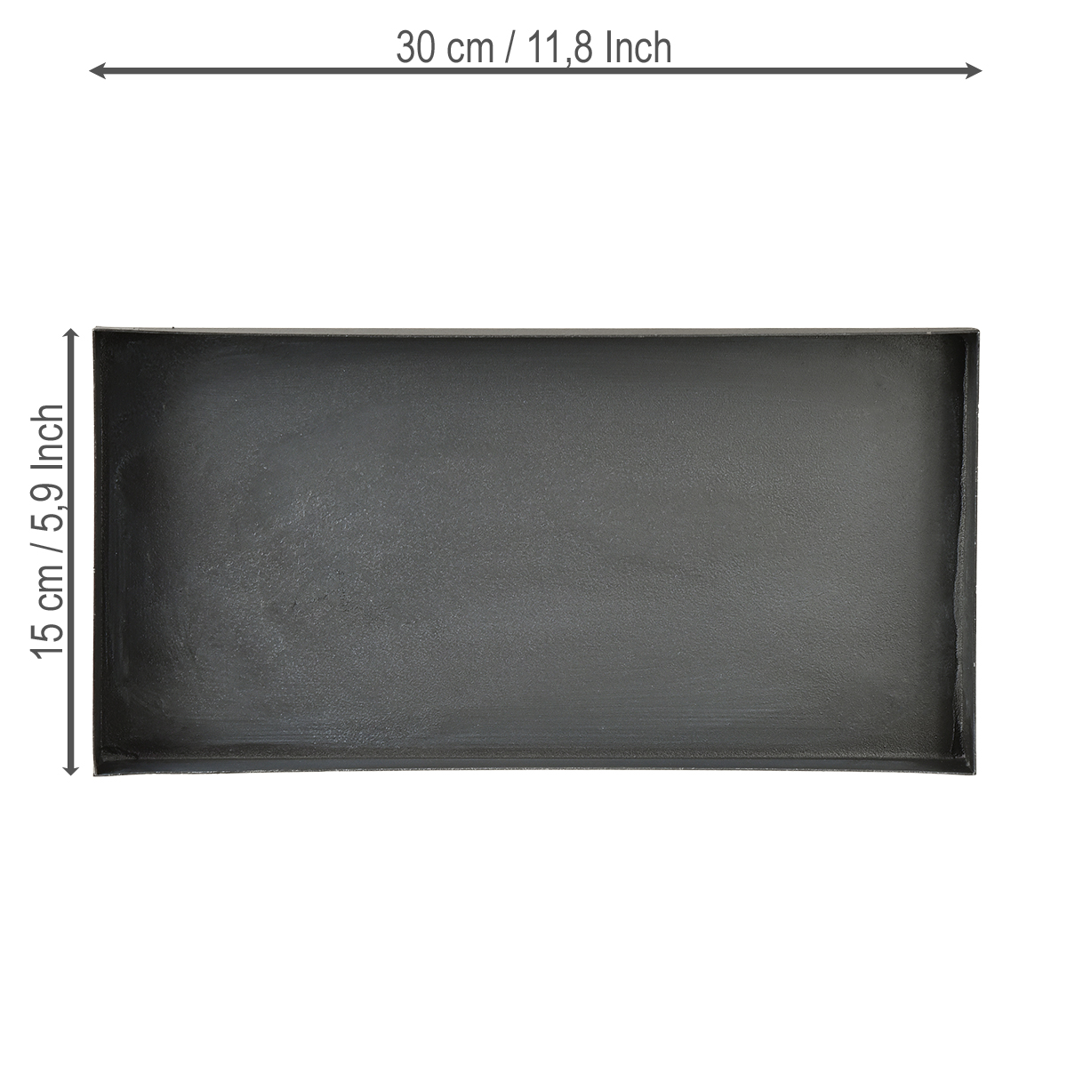 Vårt svarte metallbrett imponerer med sin tidløse eleganse og allsidighet. Med en størrelse på omtrent 30 x 15 cm gir det god plass til kreative dekorasjonsideer. Den svarte, subtilt gråvaskede fargen gir brettet et spesielt preg som perfekt utfyller ulike interiørstiler, som industrielt eller moderne. Enten det brukes som en bolle til oppbevaring av småting eller som et stilig dekorativt element, vil dette rektangulære metallbrettet bli et høydepunkt i hjemmet ditt. Oppdag de allsidige bruksområdene og kombiner brettet med for eksempel lysarrangementer, eller bruk det som et smykkebrett. Vær kreativ og la dette dekorative brettet lyse opp boarealet ditt.