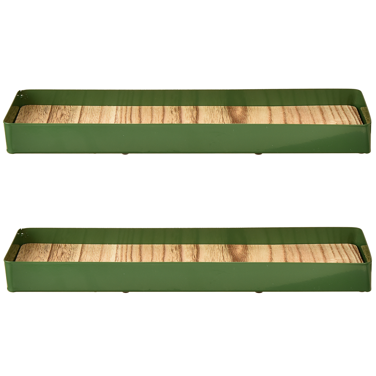 Produktnavn: Dekorativt brett i metall, tre, metallbrett, grønn, 35,5 × 11 × 3 cm, 2 stk.