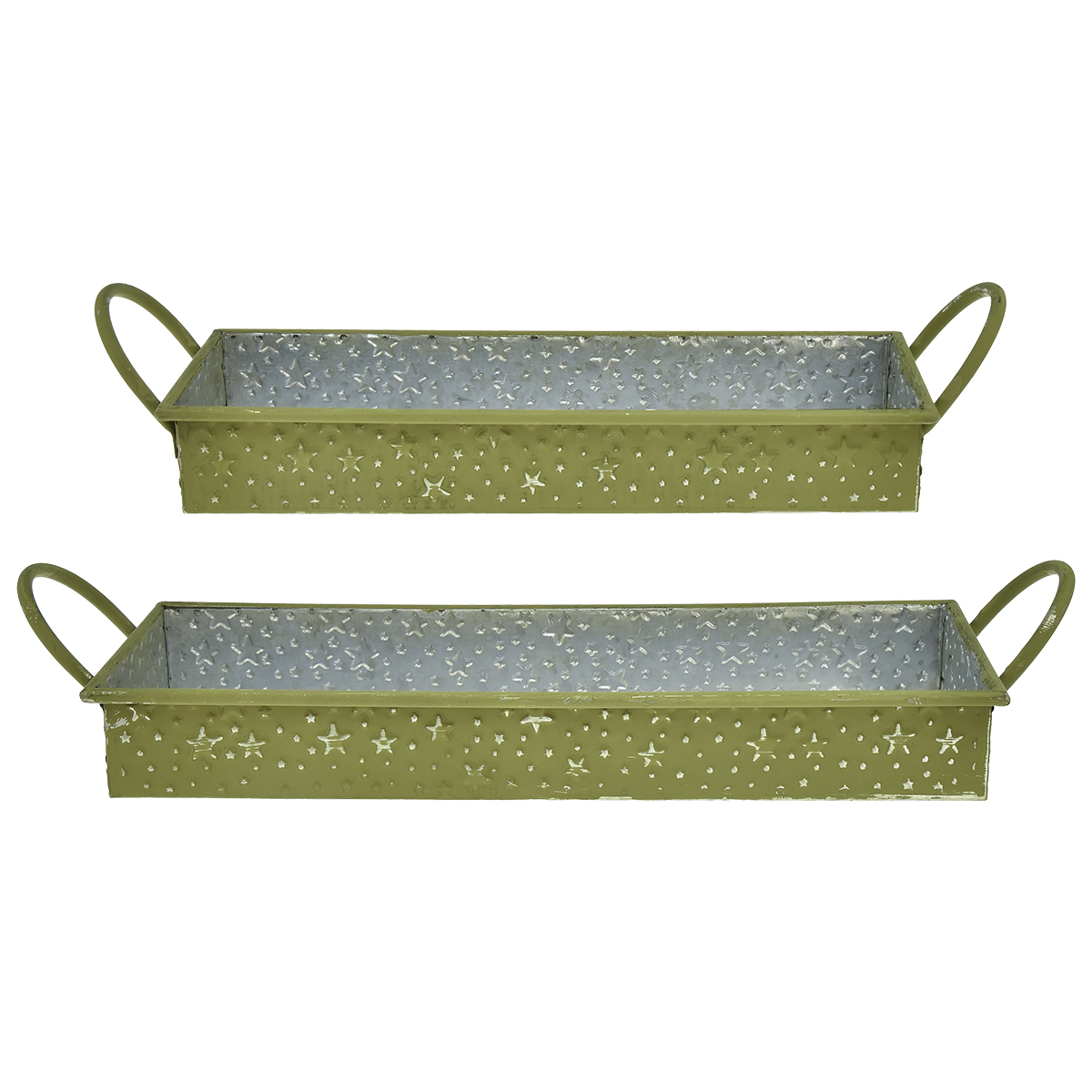 Det dekorative julebrettet i grønt med stjerner i forskjellige størrelser er ikke bare funksjonelt, men også et visuelt høydepunkt. Laget av høykvalitets metall og dekorert med et stjernemønster, er det avlange brettet perfekt som base for feriedekorasjoner. De to størrelsene tilbyr et bredt spekter av bruksområder, og de robuste håndtakene gjør omorganisering enklere.
