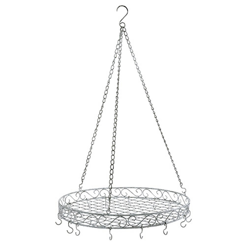 Du kan plassere flere potter og planter med urter på det store gitterområdet og henge forskjellige kjøkkenutstyr som løkfletter, hvitløk og tørket paprika på de 16 krokene. Du kan også dekorere hengebrettet med en lysstreng, med store søylelys som absolutt bør plasseres på en passende overflate, friske blomster og sesongmessige gjenstander som kjegler og furugrønt om vinteren. Det elegante metallbrettet er også ideelt for å presentere varene i butikkvinduet eller blomsterbutikken.
