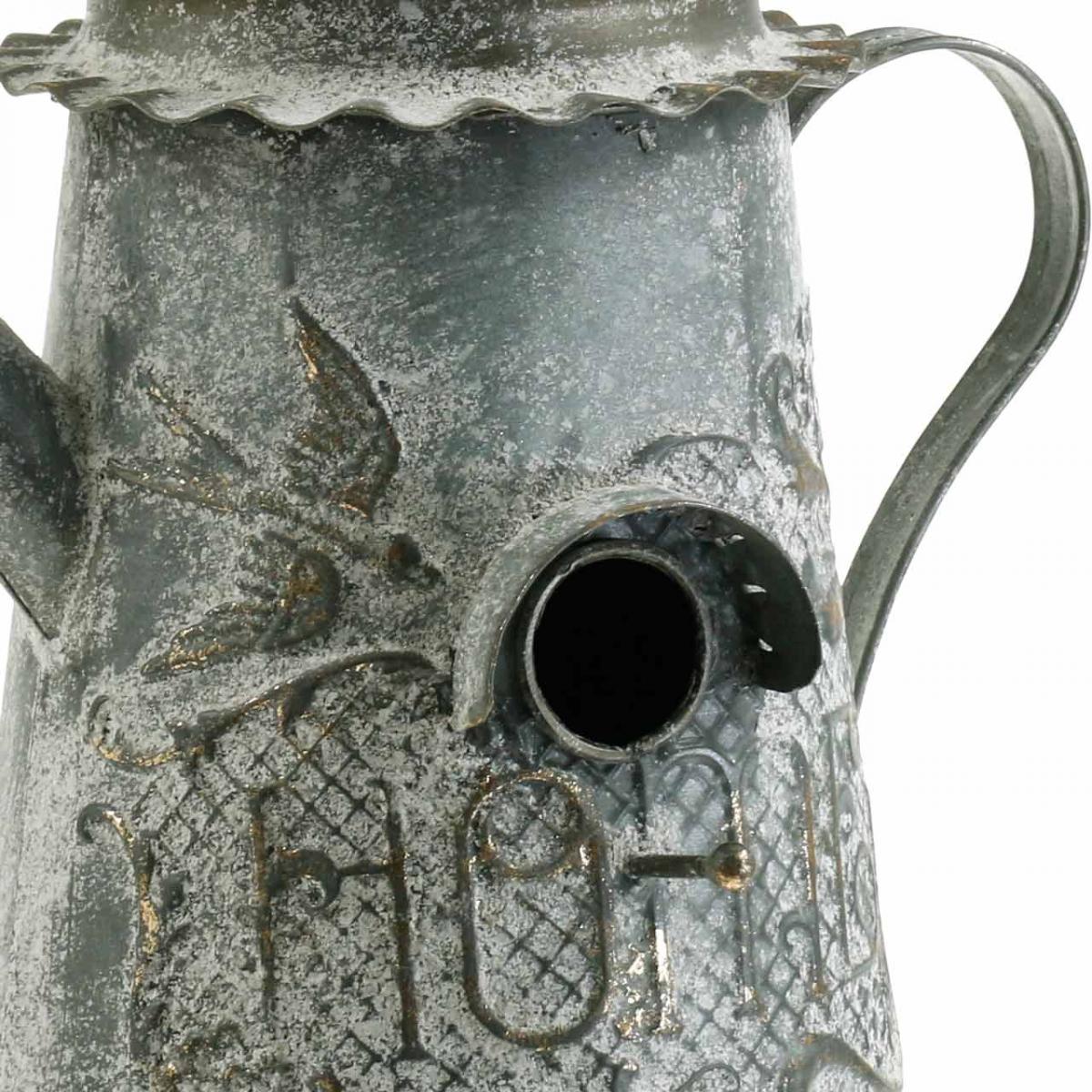 Dekorativt fuglehus vintage, dekorativ kanne metall for oppheng H28,5cm