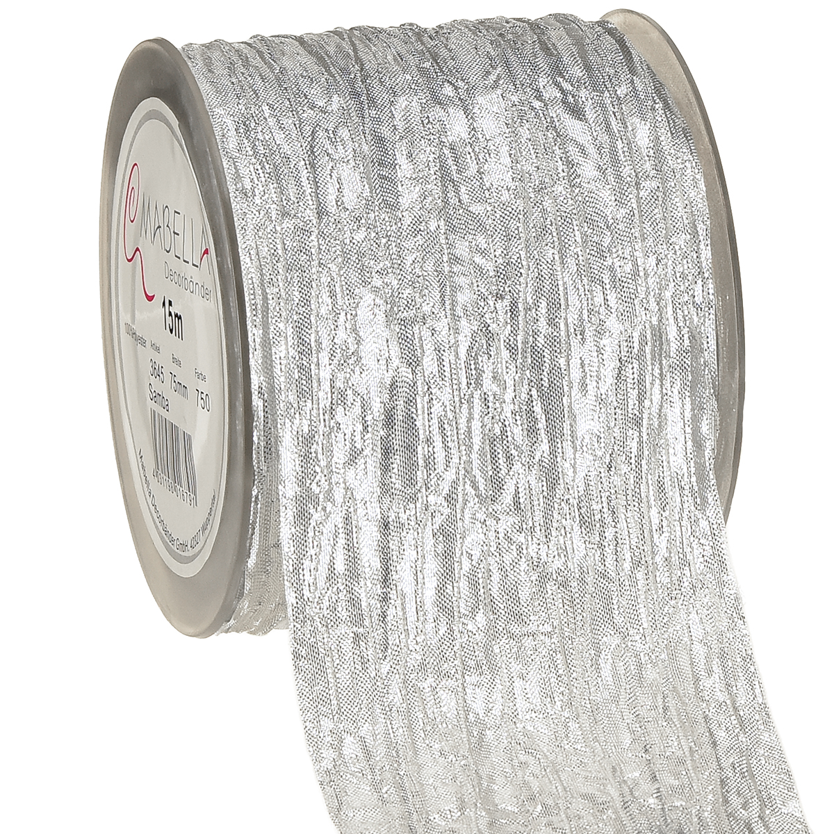 Produktnavn: Dekorativt gavebånd bordbånd sølvfarget lys 75mm 15m