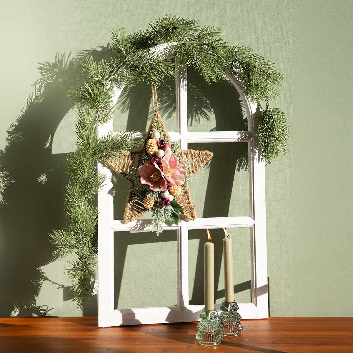 Den nøye utførelse og oppmerksomhet på detaljer gjør vinduskarmen unik som dekorasjon i landlig stil. Det lette, men robuste treverket festes enkelt til veggen og gir det perfekte lerretet for dine kreative dekorasjonsideer.