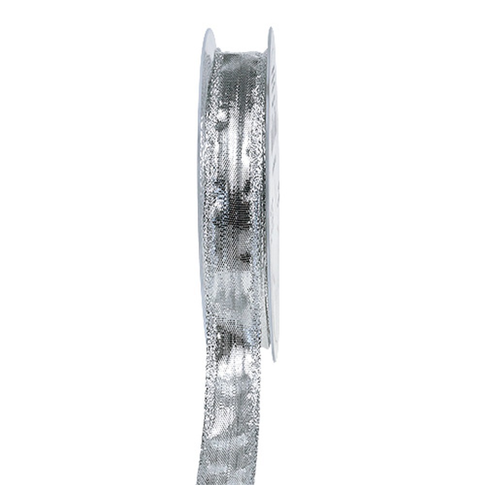 Produktnavn: Dekorbånd sølv med trådkant 15mm 25m