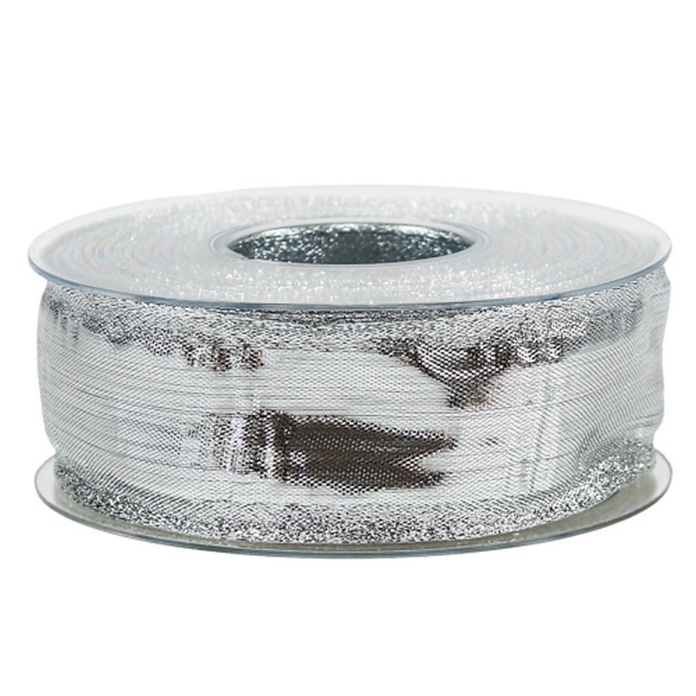 Produktnavn: Dekorbånd sølv med trådkant 40mm 25m