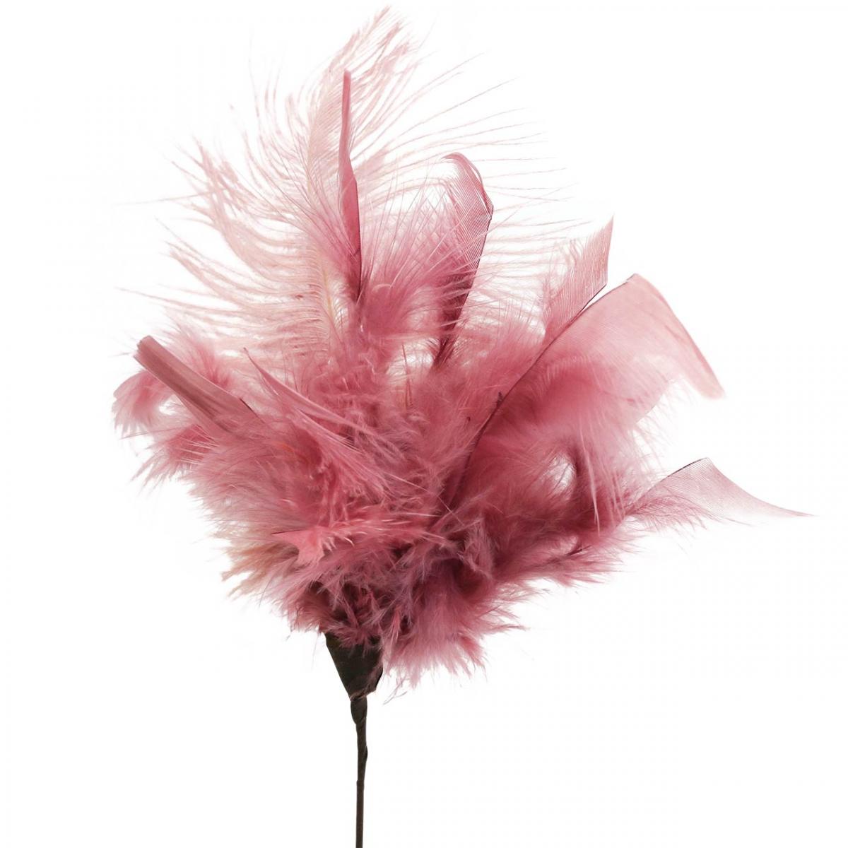 Dekorfjær på pinnefuglfjær Hvit/Fløte/gammelrosa 3 stk