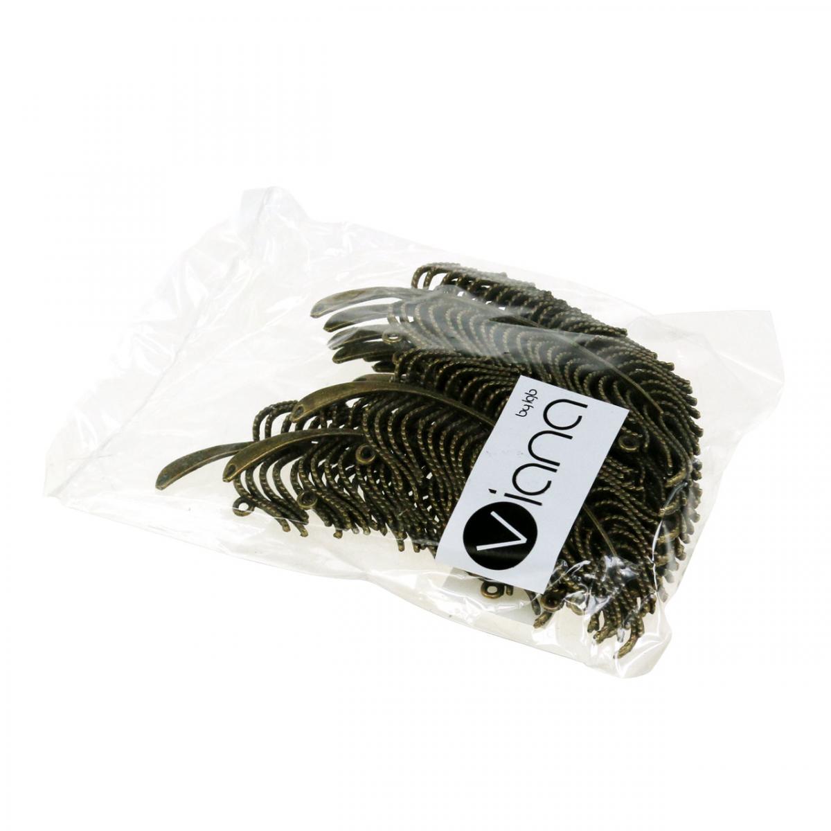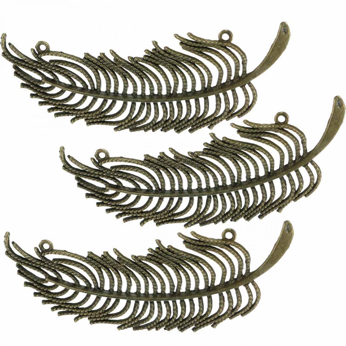 Dekorfjær, smykkeanheng, metallfjær, scatter-dekor bronsefarget L8cm 10 stk.
