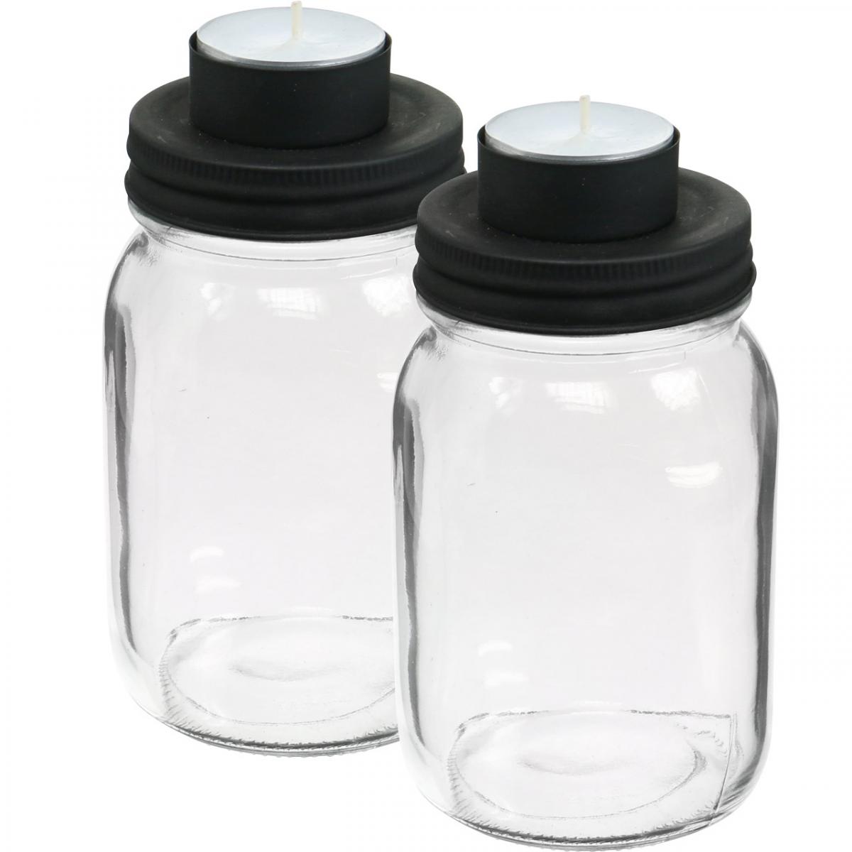 Dekorglass med telysholder sort metalllokk Ø8,5cm H15cm 2stk