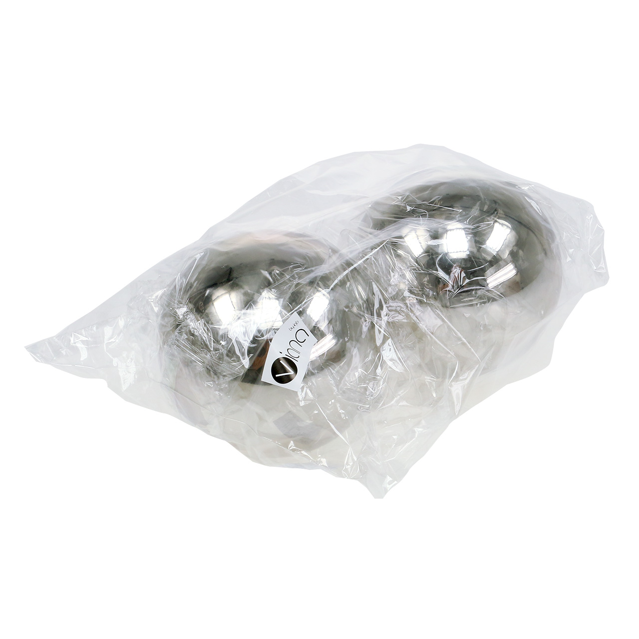 Begge dekorative kuler i rustfritt stål har en omtrentlig diameter på 11 centimeter. Du mottar det dekorative kulesettet i gjennomsiktig plastemballasje.