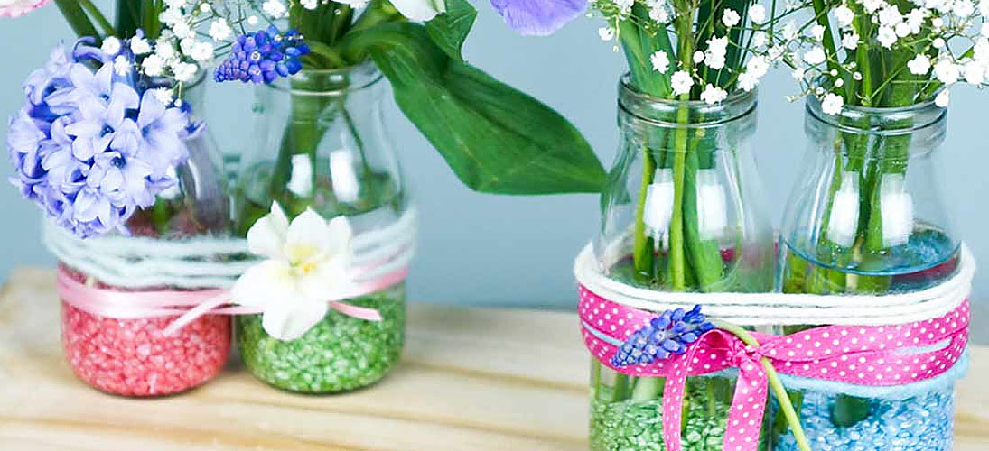 Mange vakre designideer kan implementeres fra sand, glass, steiner og granulater. Blomsterhandel er dekorativ sand, dekorative granulater og dekorative steiner populære verktøy som brukes til å avgrense kunstneriske blomsteroppsatser til bryllup, merkedager og andre feiringer.