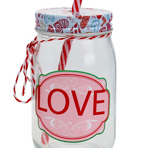 For en flott gaveide til Valentinsdag: Dette drikkeglasset har et lokk og et sugerør og er kjærlig trykt! Den ene glasskoppen er dekorert med mange stiliserte hjerter i forskjellige farger og former, mens den andre drikkekoppen er trykt med et rikt dekorert skilt som sier “Kjærlighet” med store røde bokstaver. I tillegg har de spesialpakkede sugerørene røde og hvite striper og er spesielt stabile slik at de kan brukes igjen og igjen.På toppen av det er en rød og hvit stripet tråd bundet til hvert øvre kant, som du kan merke hver for seg. Så du har muligheten til å fylle glassene med en deilig hjemmelaget punch eller en forfriskende limonade og deretter drikke dem som et par på en sommertur. Du kan også bruke drikkekoppene som tilbehør til en piknik eller en grillfest og fylle dem med vennens favorittdrink som en kjærlig Valentinsdagsgave - for en søt overraskelse!