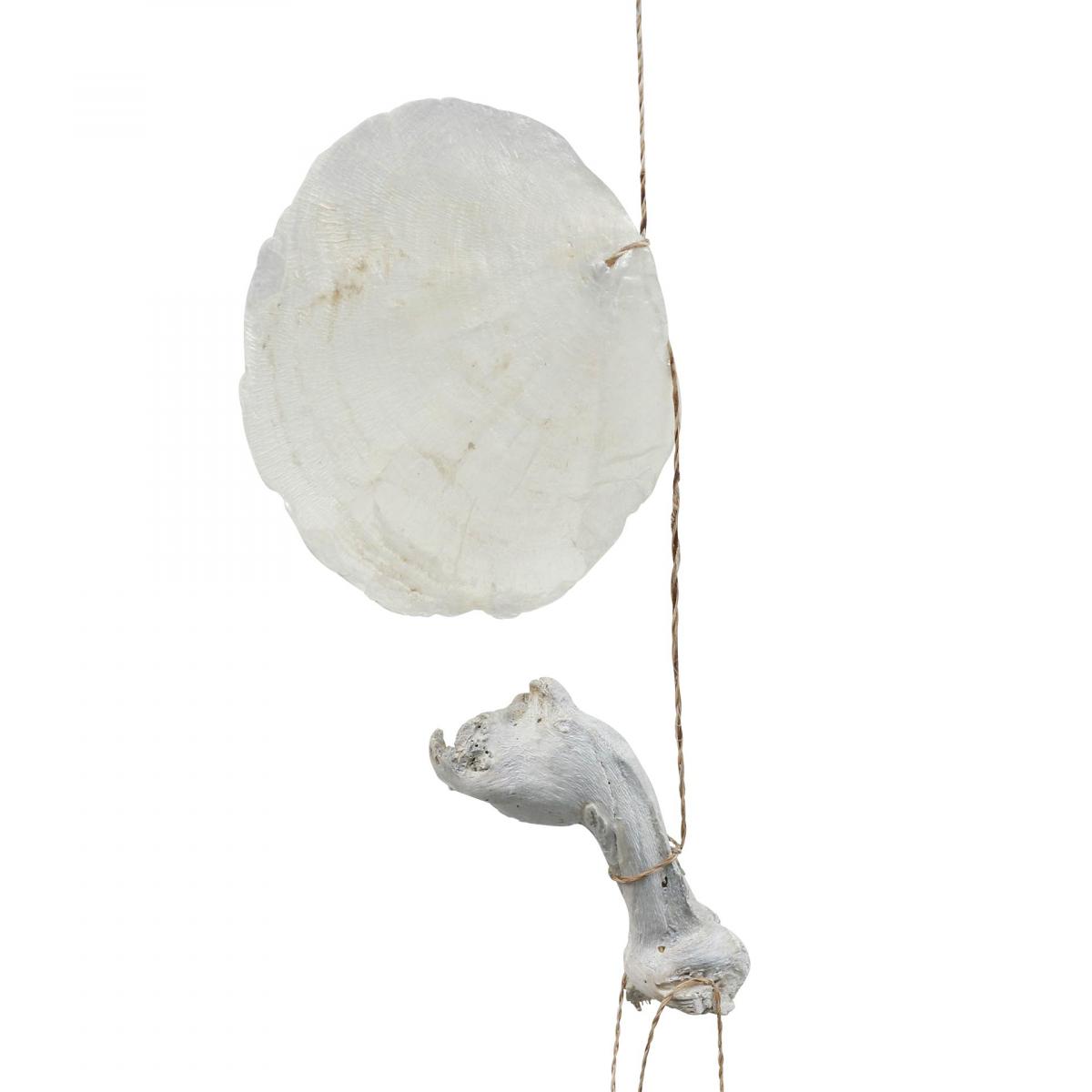 Du vil motta en tråd med 5 skiver av perlemorskjell knyttet til et gjennomboret hull, vekslende med 4 stykker hvitkalkede drivvedbiter. Med en løkke for oppheng har Capiz-kransen en omtrentlig lengde på 100 centimeter. Capiz-skjellene er 8 til 9 centimeter brede.