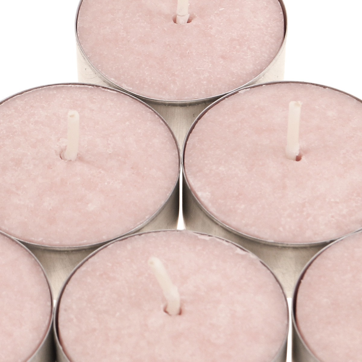 Romsduftlysene kommer i en diameter som er typisk for telys og i små aluminiumsskåler.
