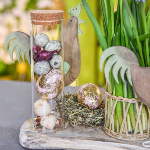 Bruk de vakre påskeeggene i tre som en allsidig strødekorasjon til påskebordet ditt eller pynt vårarrangementer eller en påskekrans som borddekorasjon.