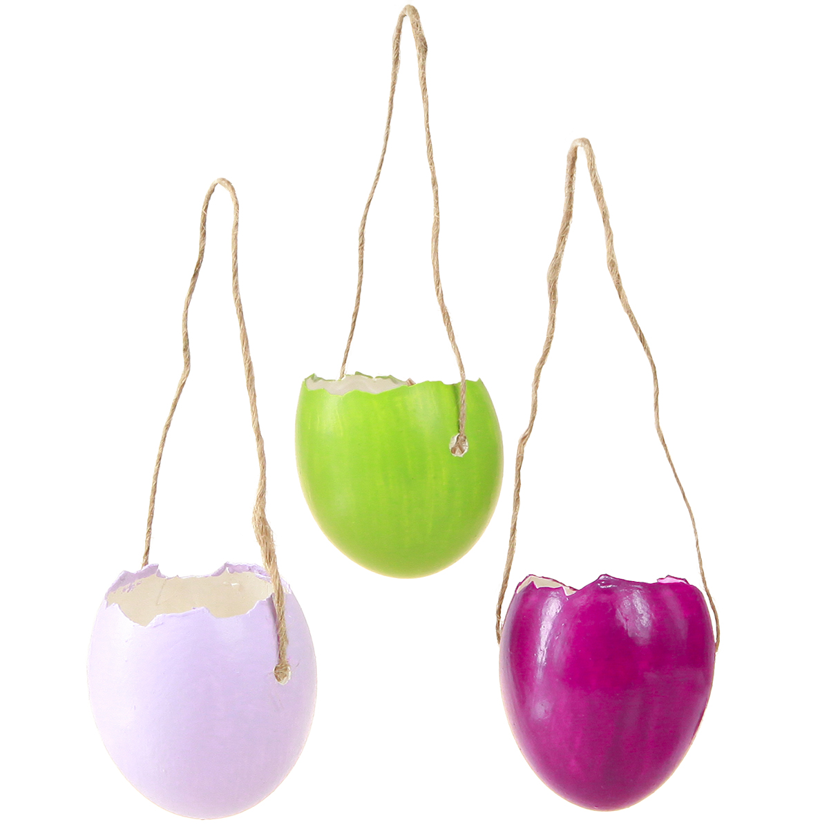 Variasjonen av påskepynt kjenner ingen grenser, og med vår fargerike eggeskalldekorasjon blir hjemmet ditt et vårens blikkfang. Disse hengende påskeeggene er perfekt koordinert med den moderne herregårdsstilen, og bringer fargerike aksenter, friskhet og livlighet til ethvert rom. Påskeeggene med en diameter på rundt 3,5 cm imponerer med sitt kunstferdige knuste skall i de fortryllende fargene lysegrønt, lys lilla og rosa. Hvert egg tømmes forsiktig og forsynes med to subtile hull som holder en naturfarget jutesnor på plass. Disse 12 påskeeggene er ideelle til hjemmedekorasjon, det være seg på en påskebukett, som en del av en påskekrans eller som et kreativt tillegg til borddekorasjonen. Bruk denne allsidige hengende påskedekorasjonen for å sette et spesielt preg på oppholdsrommet ditt og ønske den varme årstiden velkommen.