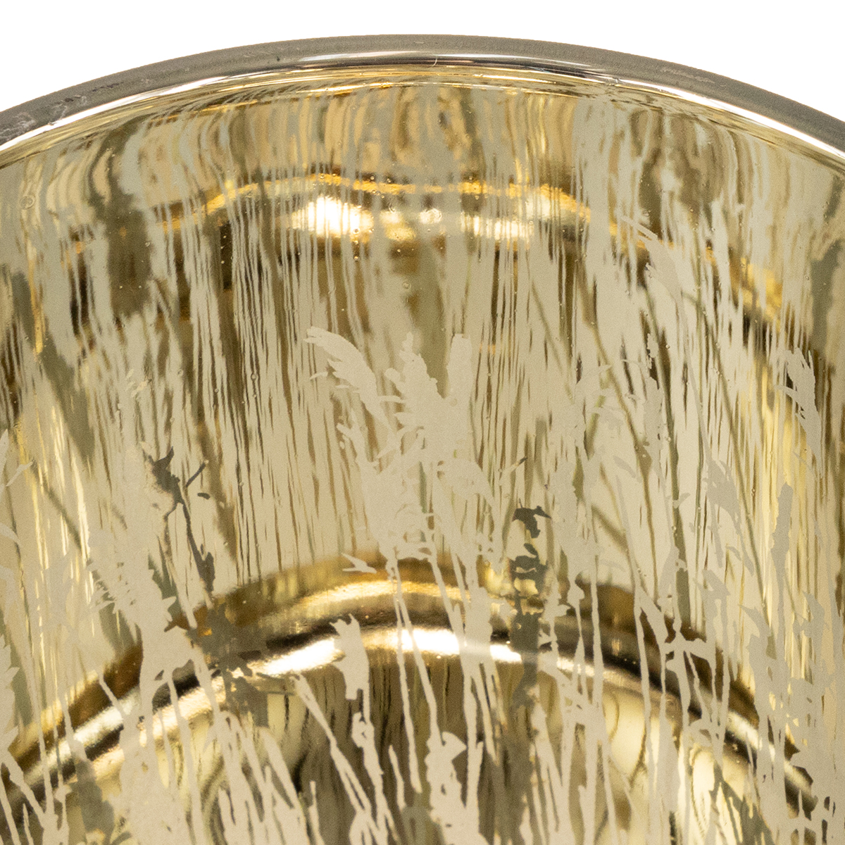Hva med å forvandle hjemmet ditt til en liten oase av velvære med bare noen få enkle grep? Denne elegante dekorative lykten med gressmotiv bringer nettopp den magien inn i hjemmet ditt. Kombinasjonen av et mykt blått lys, delikate gulldetaljer og et atmosfærisk gressdesign skaper en virkelig spesiell atmosfære – både i dagslys og i stearinlysets lys. Når lyset inni skinner, skaper det speilbelagte interiøret vakre effekter som tilfører varme og hygge til ethvert rom. Perfekt for alle som ønsker et naturlig, men moderne dekorativt preg.