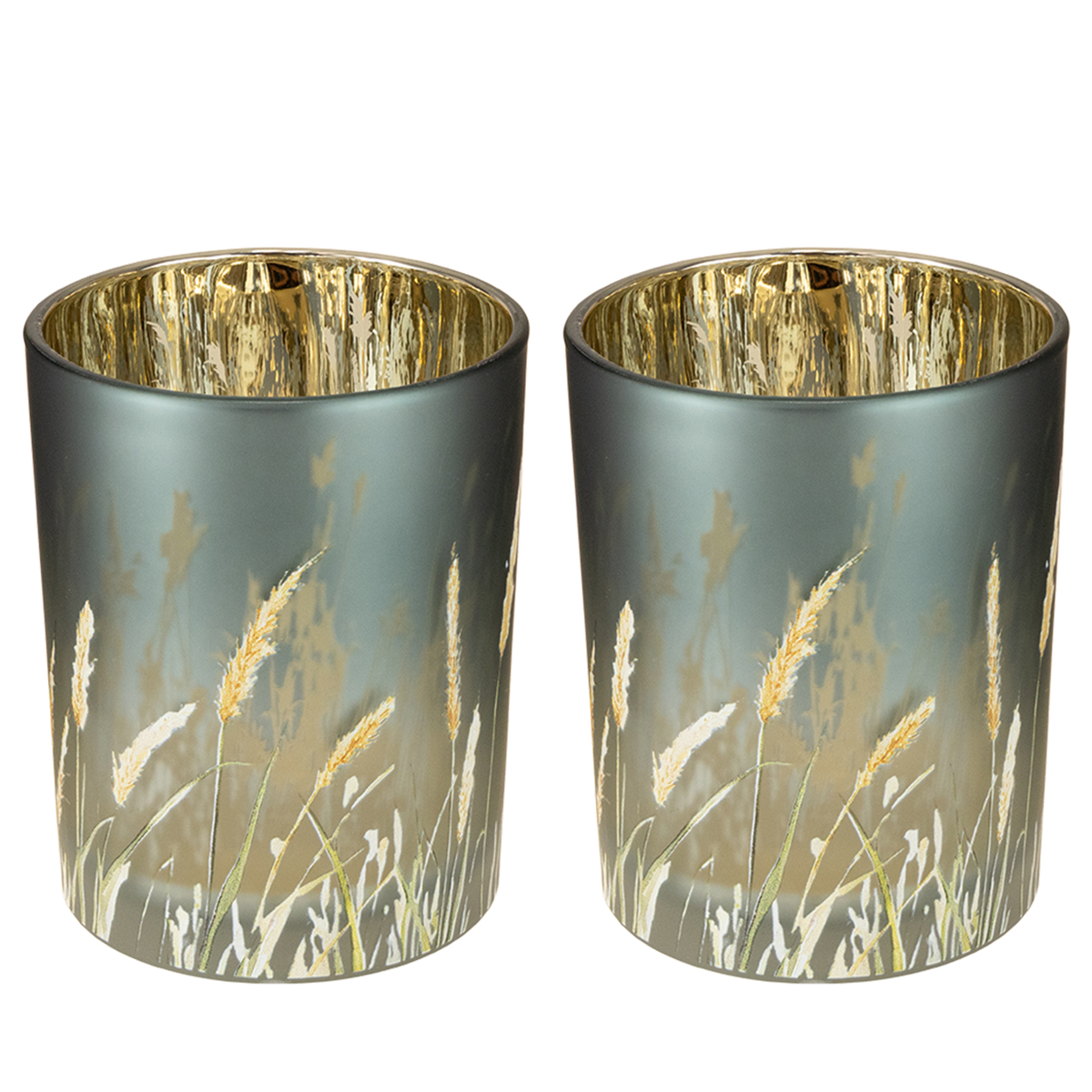 Elegant dekorativ lykt med gressmotiv for koselige boligtilbehør, 12,5 cm, 2 stk.